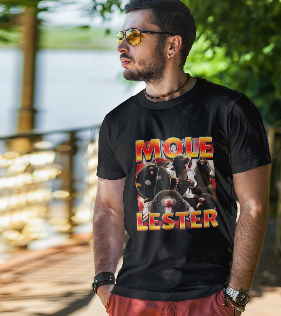 Meet the Mole Lester Charm Parody with Roses and Moles T-Shirt. Made with 100% ring-spun cotton that's pre-shrunk to minimize shrinking after washing. Features reinforced construction for added structure. Available in standard U.S. sizes S-5XL (see size chart for specifics).