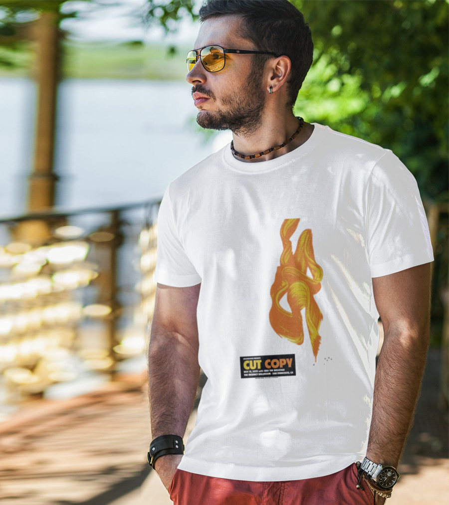 Images Gallery — Cut Copy San Francisco November 13 2025 Concert Orange Yellow Flame Artwork Shirt Mockups Collection